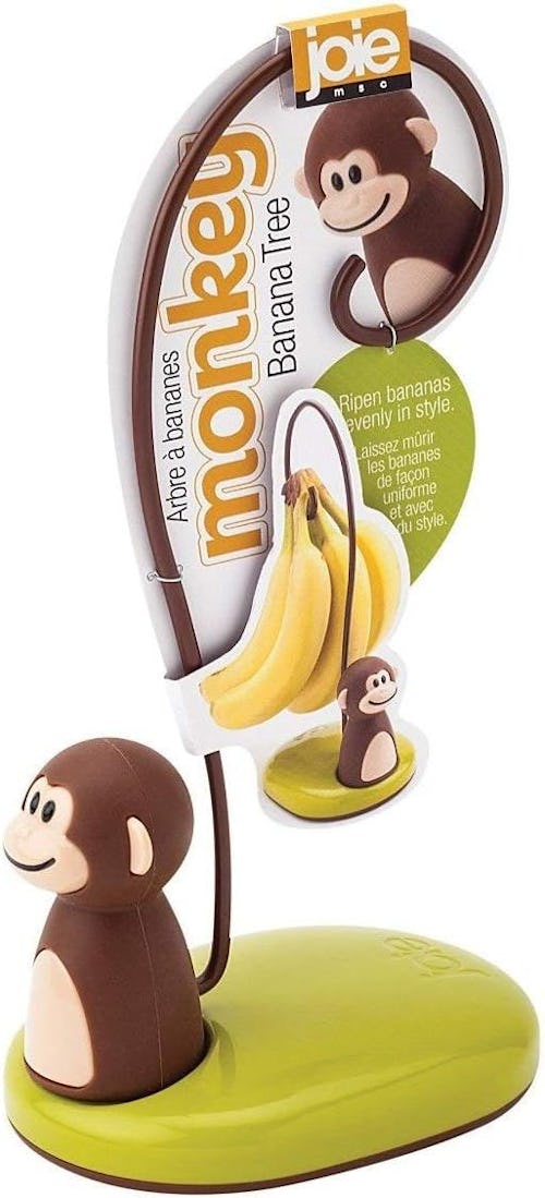 Hang your banana bunch on this whimsical hook to help the fruit last longer and ripen more evenly. Designed to fittingly look like a monkey with a long tail, the banana holder is crafted from a combination of metal and plastic and features a sturdy stand that’s designed for flat surfaces.