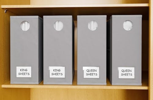 Tidily tame your linen closet with this set of four sheet organizers. Each holds a full, queen, or king sheet set, there are label cards so you never mix up sizes, and the front window lets you see what’s inside without opening anything. Each cube is sturdy, stackable, and honestly makes folding sheets a lot more satisfying.