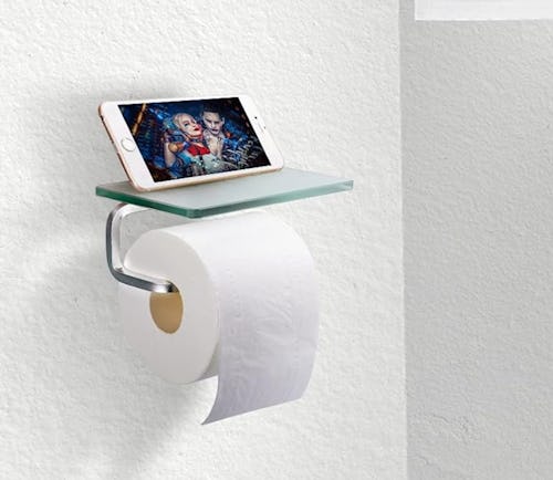 Designed with durability and style in mind, this toilet paper holder includes a handy glass shelf with a chic frosted finish. Two installation methods — adhesive or screw mount — offer flexibility for various surfaces. The sleek anti-rust aluminum construction makes it sturdy and practical, and the multipurpose shelf is ideal for your phone or small decor.