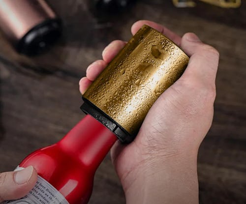 If you struggle to use traditional bottle openers, give this magnetic bottle opener a try. It utilizes a push-pull operation that makes it so simple — just place it on the bottle, push down, then pull it off, and the cap will be removed. The compact size makes it super portable, while bold colors and a sleek design make it nice enough to leave on display.