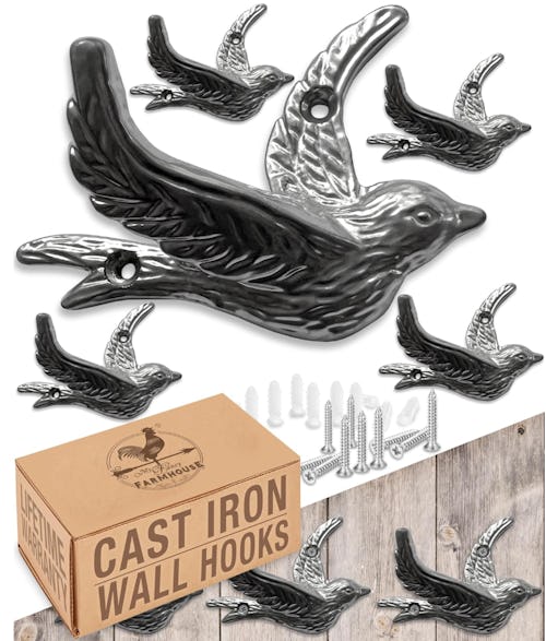 Bird-shaped cast iron wall hooks that are both practical & decorative