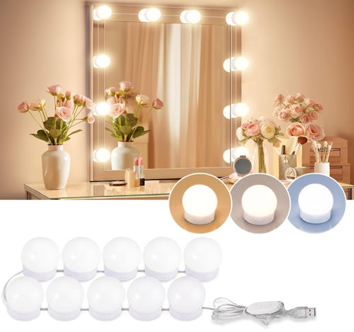 Add these vanity string lights to a mirror for an instant touch of glam. The LED lights come in a pack of 10 and feature three color options and nine brightness levels. The lights charge via a USB cable, so you can power them with a battery bank or AC outlet, and they’re a breeze to install with the included adhesive tape.