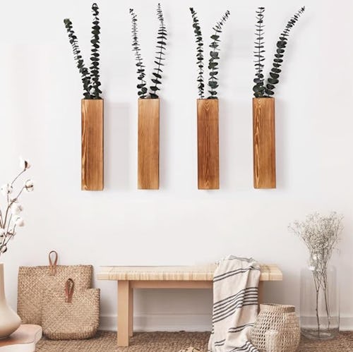 These sleek wooden planters are designed to be mounted on the wall and can add unexpected mid-century style to your space. Made from lightweight and durable pine wood, the planters come pre-assembled and equipped with sawtooth hangers for easy installation. They’re best suited for dried flowers like eucalyptus or lavender, but artificial plants would also look fantastic.