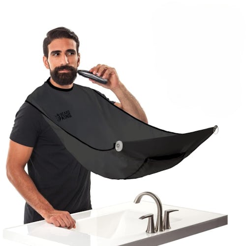 Keep your hair trimmings out of the bathroom sink for good with this beard bib. The design is simple yet effective: It fastens around your neck in back and features two hooks which connect to suction cups that adhere to your mirror. As you shave and trim, the hair debris will fall into the hammock-like apron, so you can easily empty it into the trash when you’re done.