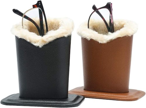 Why fumble around with complicated cases when you can simply drop your frames into these upright eyeglasses holders that are so convenient? Each holder is lined with a plush, fleece-like material that helps to prevent scratches on your lenses. As one Amazon user wrote, “These glasses holders are so helpful because not only do they make your glasses easy to find, but they also keep them clean. They are also perfect for wireless remotes next to your TV and bed.”