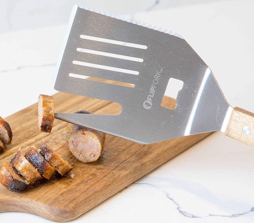 Get more from your cooking accessories by opting for multitasking items like this five-in-one grill spatula. It’s made from durable stainless steel with an elongated tine you can use to spear, a thin blade that slices, a built-in bottle opener, and a serrated edge that tenderizes. And thanks to the beautiful acacia wood handle, it’s as attractive as it is useful.