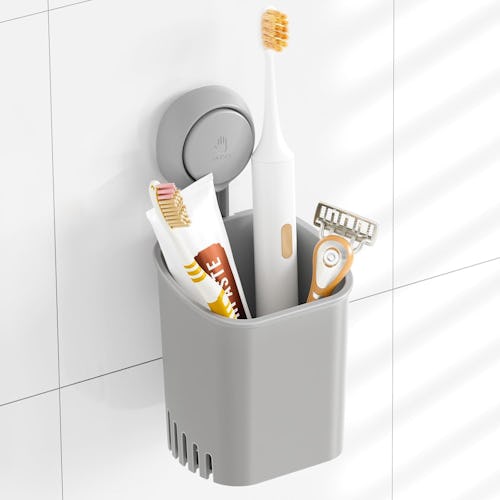 Amp up the tidiness of your bathroom with this highly functional shower wall organizer. It stays put using a strong suction cup and has room for a toothbrush, razor, and toothpaste. It holds over 6 pounds at once, and is made of a waterproof material that comes in four colors.