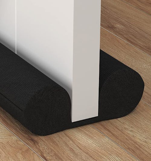 A foam-filled door stopper that helps block drafts, noise, & light