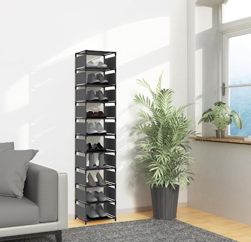 This tall, narrow shoe rack turns that random hallway nook or closet corner into a storage powerhouse. With 10 tiers of adjustable shelves, it’s designed to fit up to 15 pairs of heels, boots, or sneakers without hogging precious floor space. Each shelf can hold about 4.4 pounds, but the sturdy frame is lightweight at just 3.3 pounds. It comes in white, black, and gray. Bonus: No tools are required for assembly.