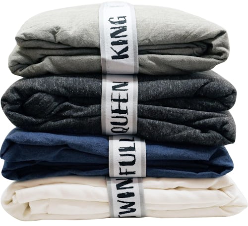 Stretchy bed sheet bands that keep linens labeled & tidy