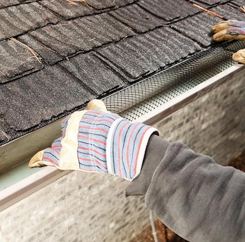 Plastic mesh guards that help keep your gutters clear
