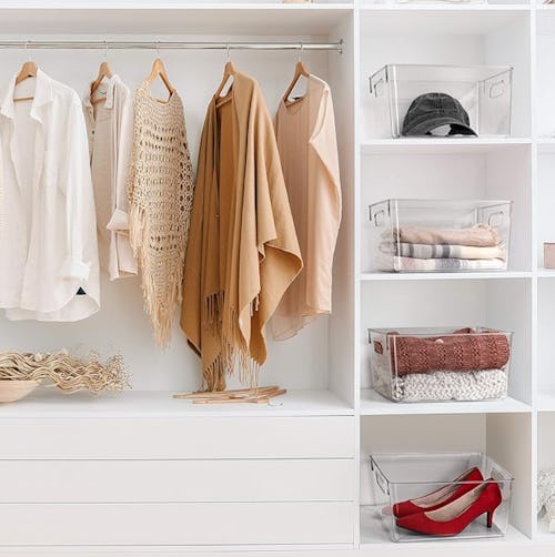 These acrylic shelf dividers offer a minimalist but effective solution for closet and pantry organization. They’re designed to slide easily onto existing shelves up to 0.95 inches thick — no tools required. The smooth, rounded corners also help prevent damage to clothing or surfaces. Since they’re clear, they’ll basically disappear visually, but you’ll feel the impact every time you grab a perfectly stacked towel instead of having to dig through a collapsing tower of chaos.