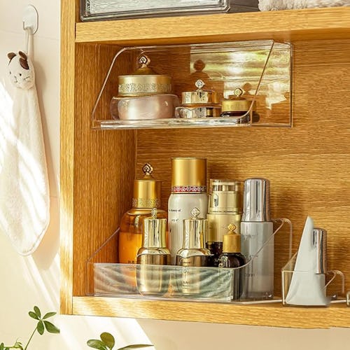 Your toothpaste, tweezers, and toner have finally found their forever home. This clever clear shelf mounts inside your cabinet (or even under it) with the included adhesive strips — helping organize cluttered shelves. It’s great for all those little skin care bottles, contact cases, cotton balls, and more — and its compact size helps it fit even into smaller medicine cabinets.