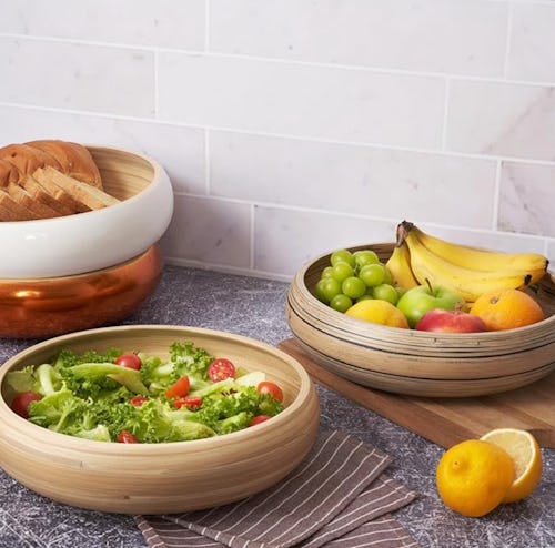 This fruit bowl is the kind of piece that makes your kitchen look like it belongs in a design magazine. Handmade from natural bamboo and lacquered for a sleek finish, this 12-inch bowl is a stylish and functional addition to any kitchen. Its 16-cup capacity makes it ideal for salads, snacks, pasta, and more. The bowl is designed to be lightweight and shatter-resistant, and it comes in seven chic colors.