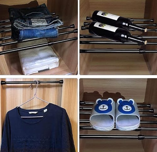 These adjustable tension rods help you easily customize your space — from adding a curtain rod to a window to creating a shelf in a cabinet. They extend from 15.7 to 28 inches and twist into place with nonslip rubber tips — no tools needed. You get six in a pack so you can organize every nook and cranny in your kitchen, closet, or camper, and the rods also come in white or wood grain if you want other color options.