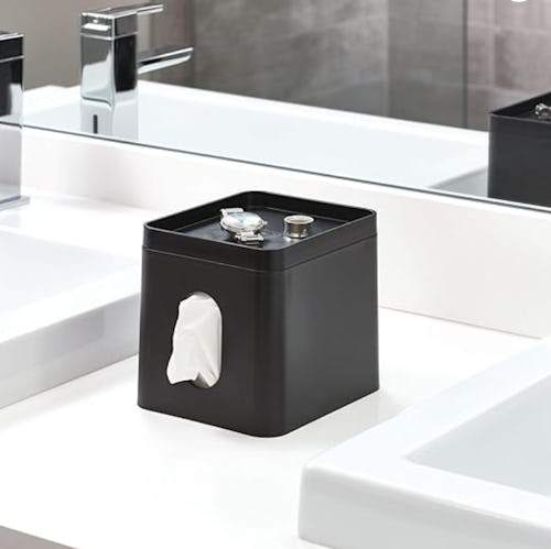 Disguise unsightly tissue boxes by using this minimalist cover. The matte black shade is understated and stylish, fitting right in with modern decor. The top also doubles as a small storage tray, great for holding jewelry and accessories when you’re in the shower.